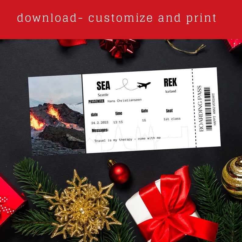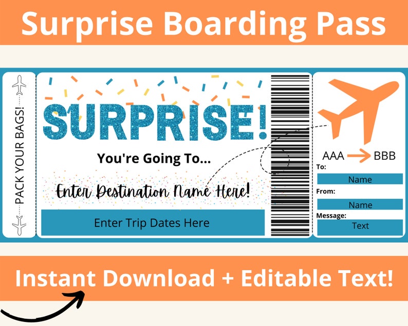 Editable Boarding Pass Ticket Template Surprise Airline Gift Etsy