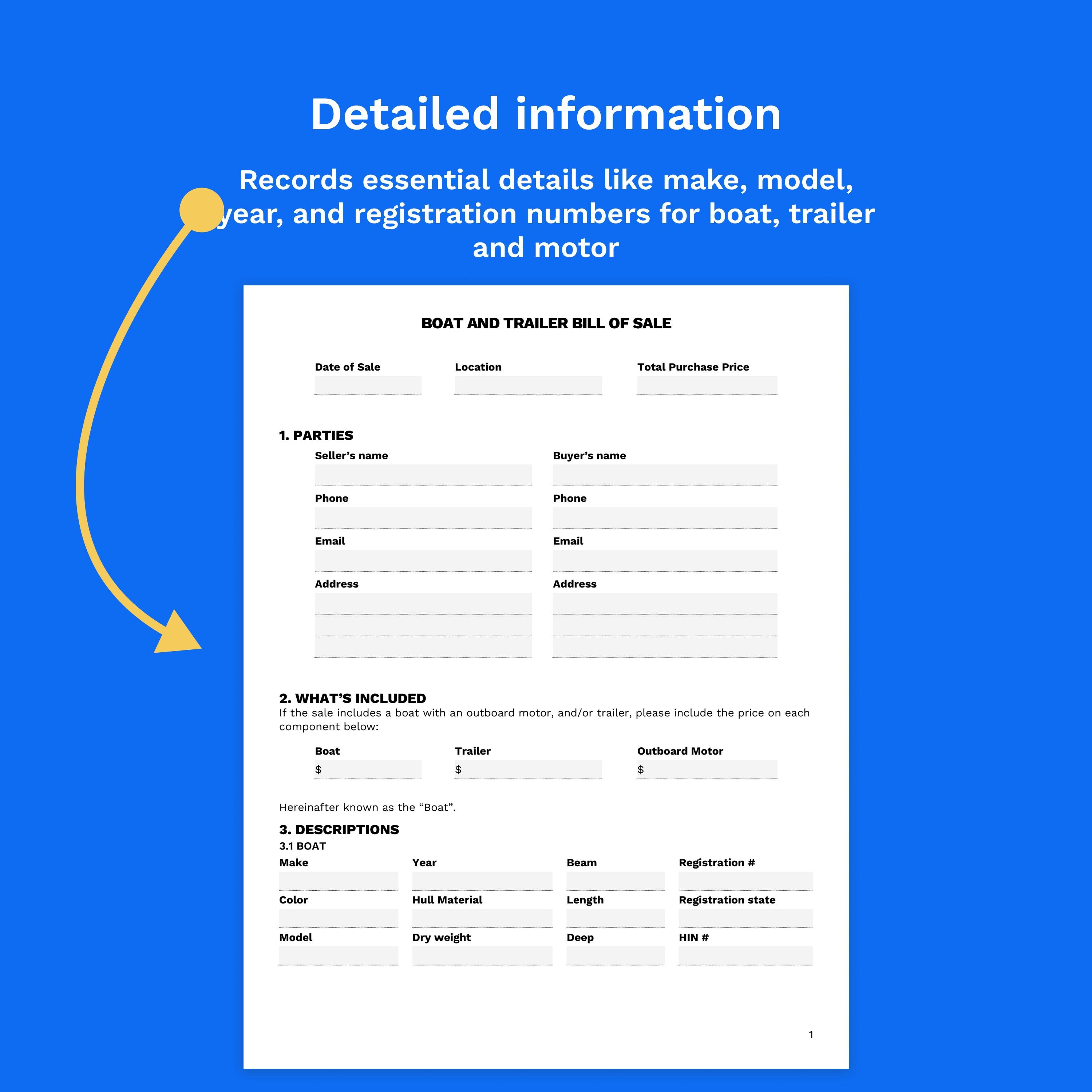 EDITABLE Simple BOAT TRAILER Bill of Sale Template Google Docs Word Pdf