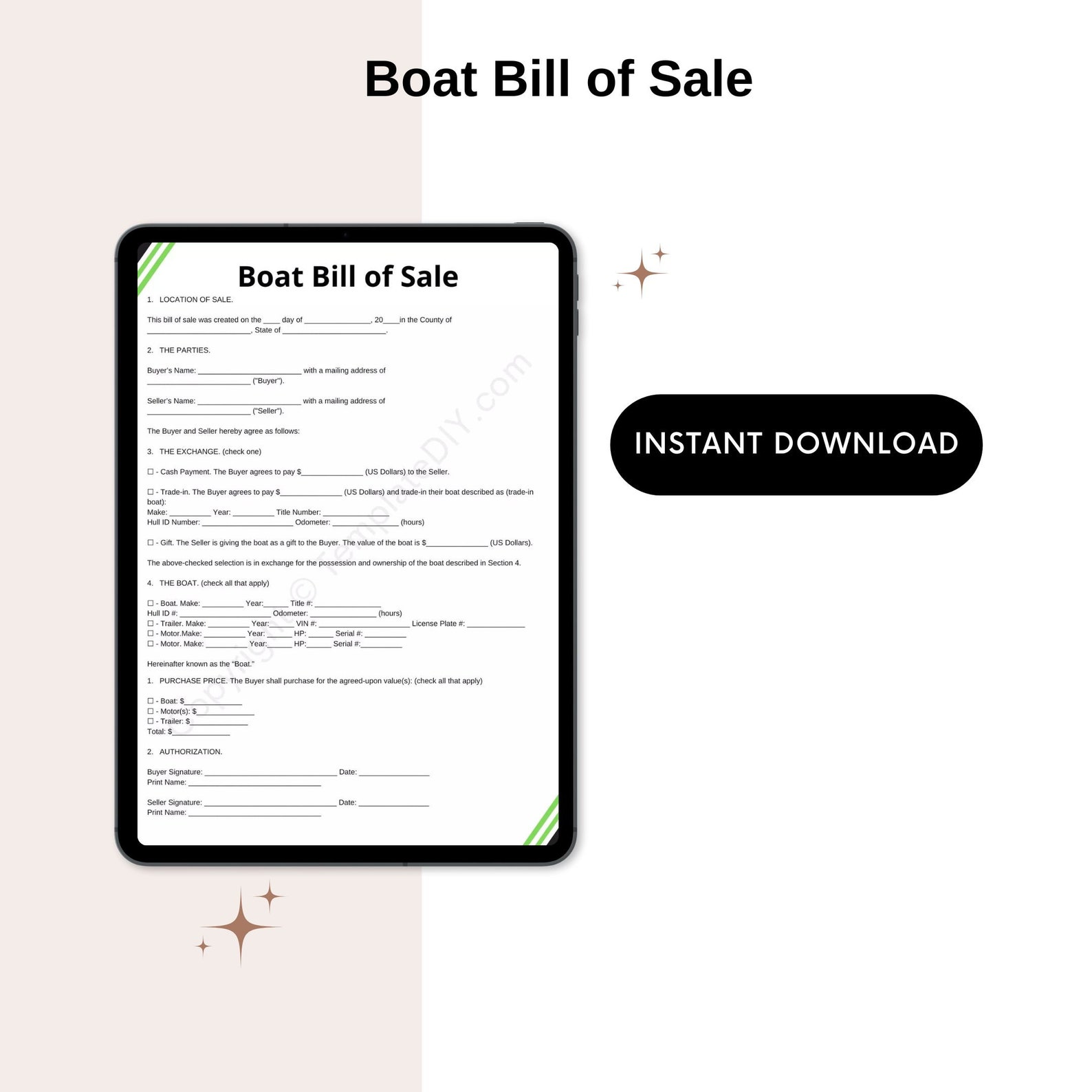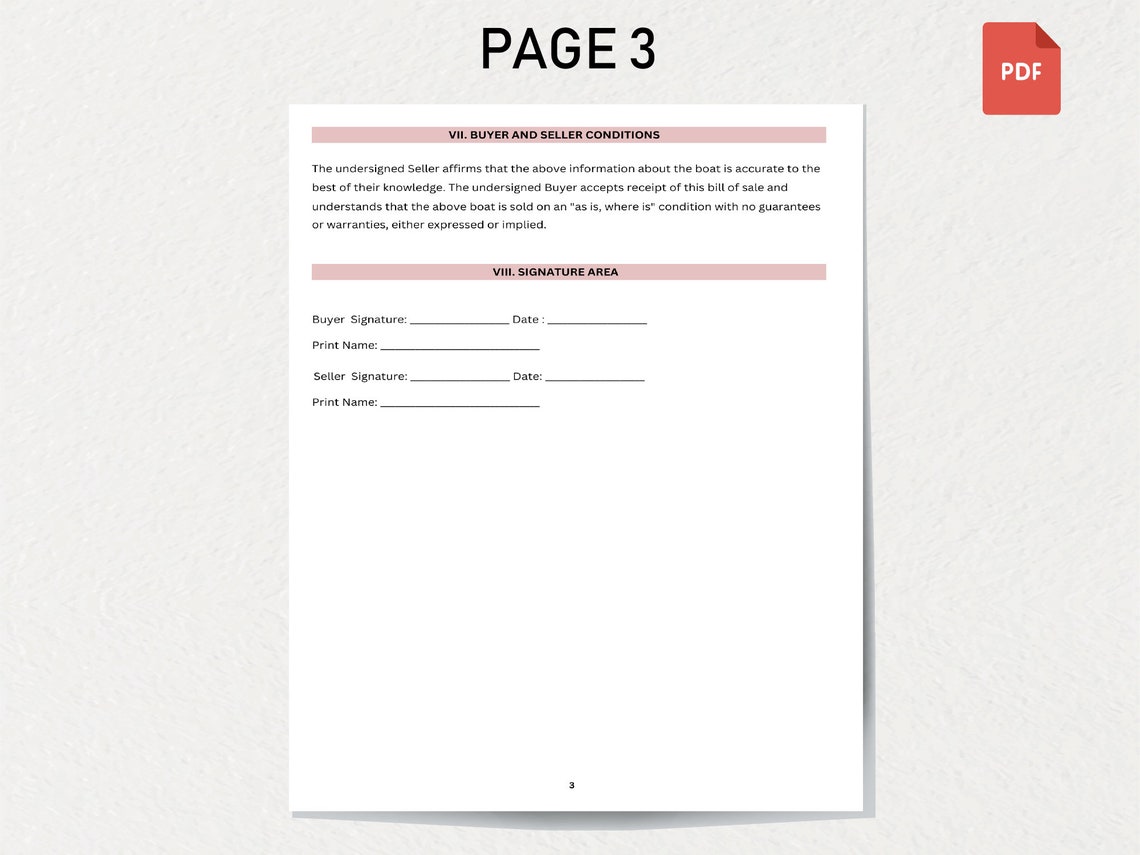Boat Bill of Sale Blank Printable Form Template in PDF Word Etsy