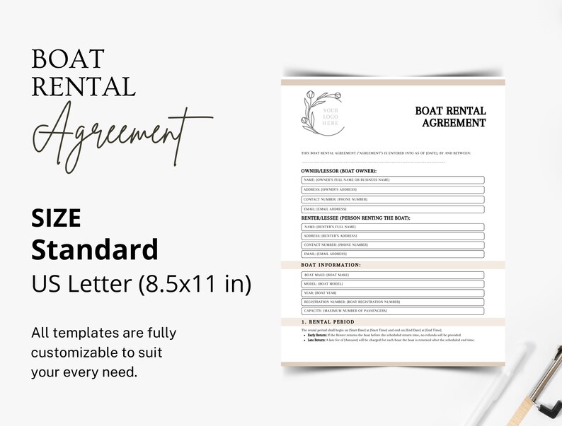 Boat Rental Agreement Template Editable Boat Rental Contract Printable