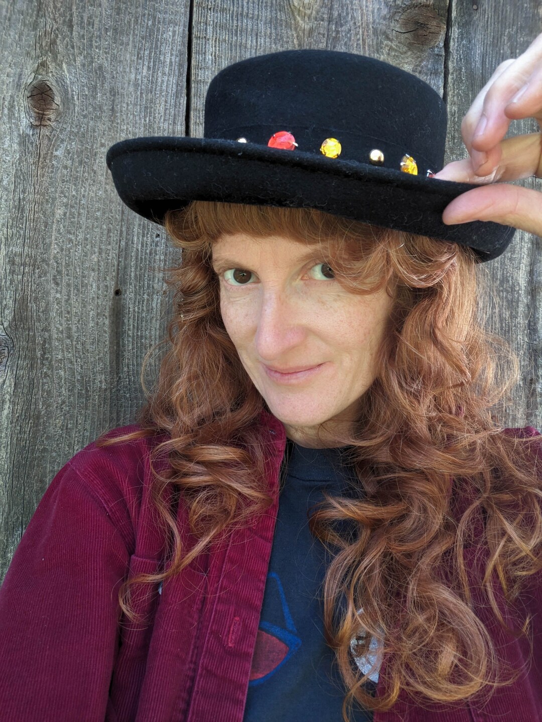 90s Vintage Y2K Black Wool Felt Hat Bedazzled Rhinestone Band / Blossom