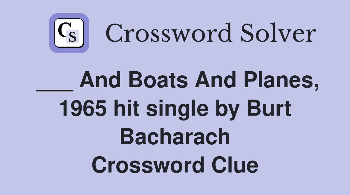 And Boats And Planes 1965 hit single by Burt Bacharach Crossword