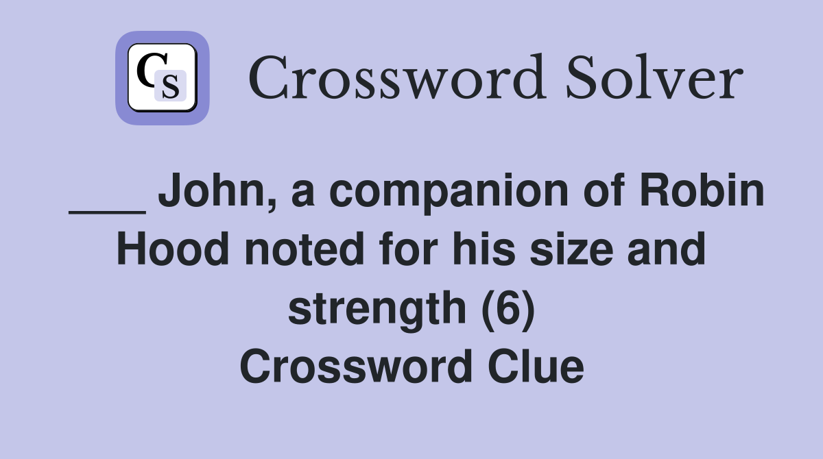 John a companion of Robin Hood noted for his size and strength (6