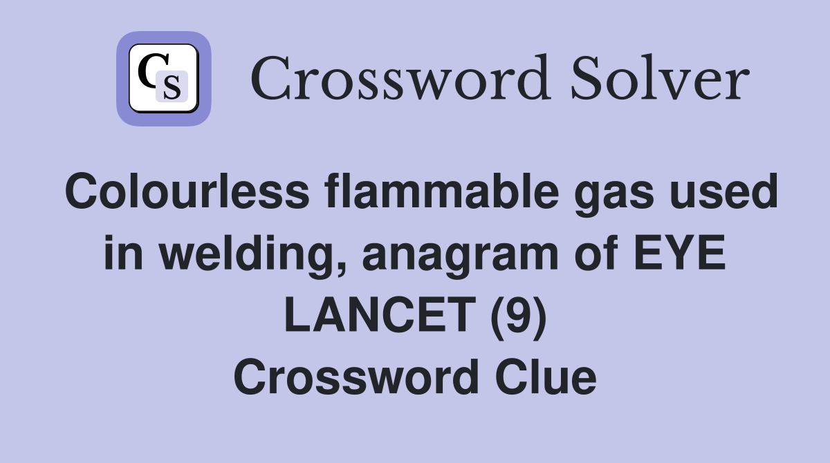 Colourless flammable gas used in welding anagram of EYE LANCET (9