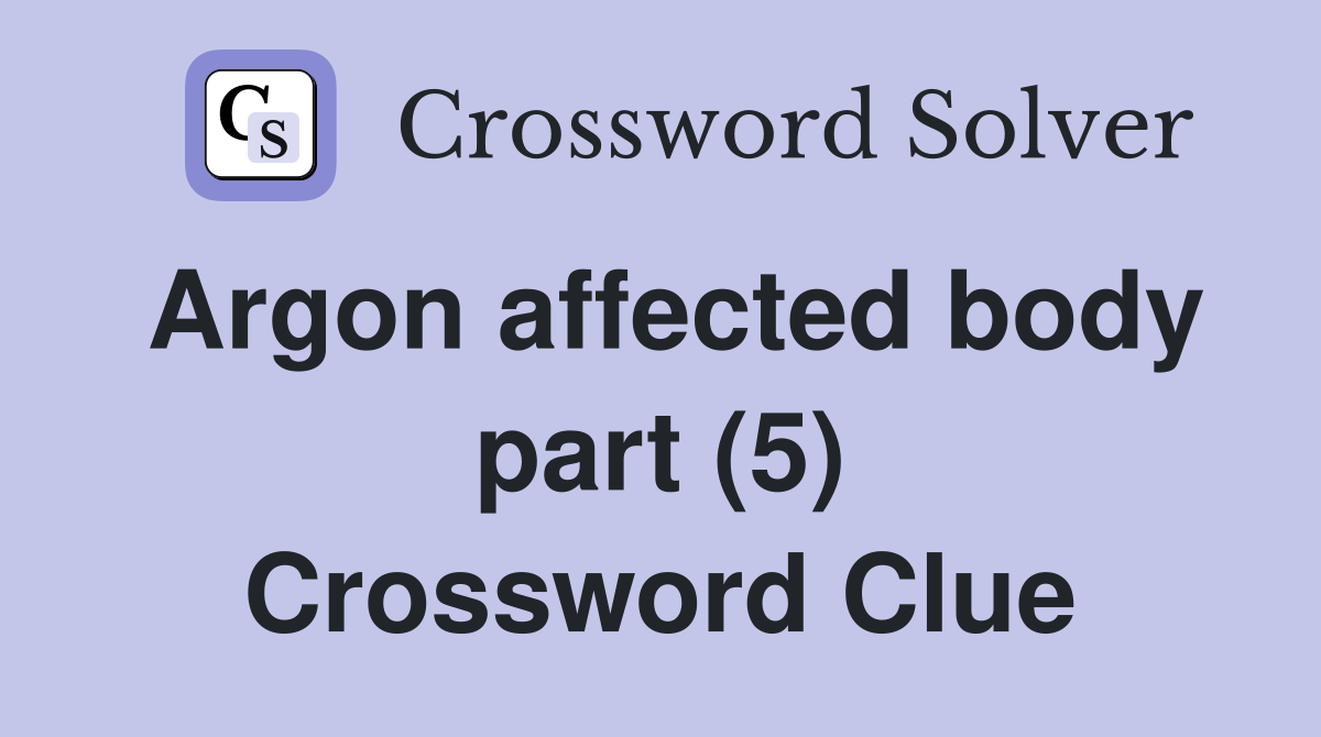 Argon affected body part (5) Crossword Clue Answers Crossword Solver