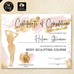 20 X Editable in Canva Printable Certificates for Body Sculpting