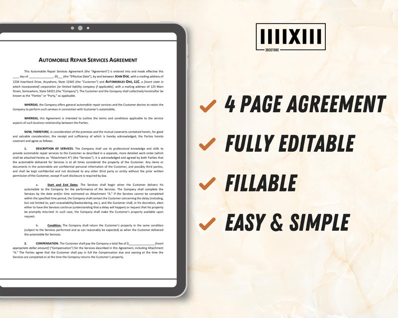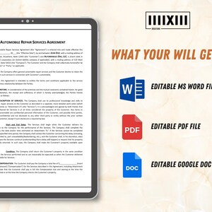 Auto Repair Contract Mechanic Work Agreement Car Maintenance Service