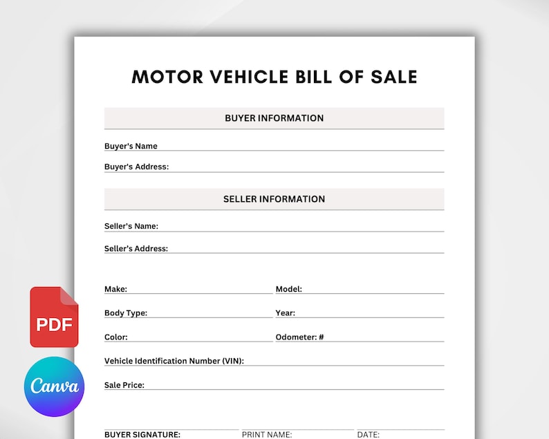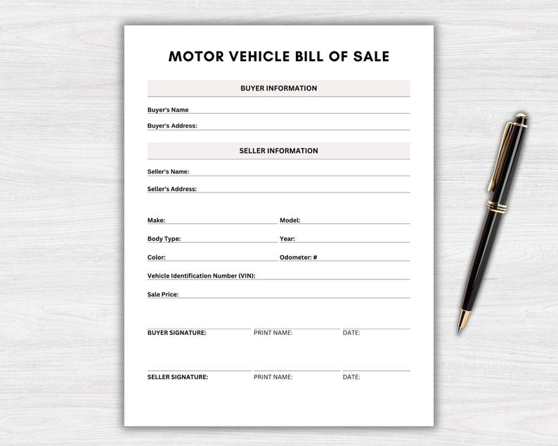 Bill of Sale Printable Motor Vehicle Sale Contract Vehicle Bill of
