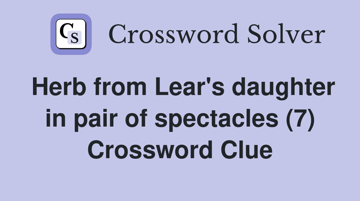Herb from Lear #39 s daughter in pair of spectacles (7) Crossword Clue