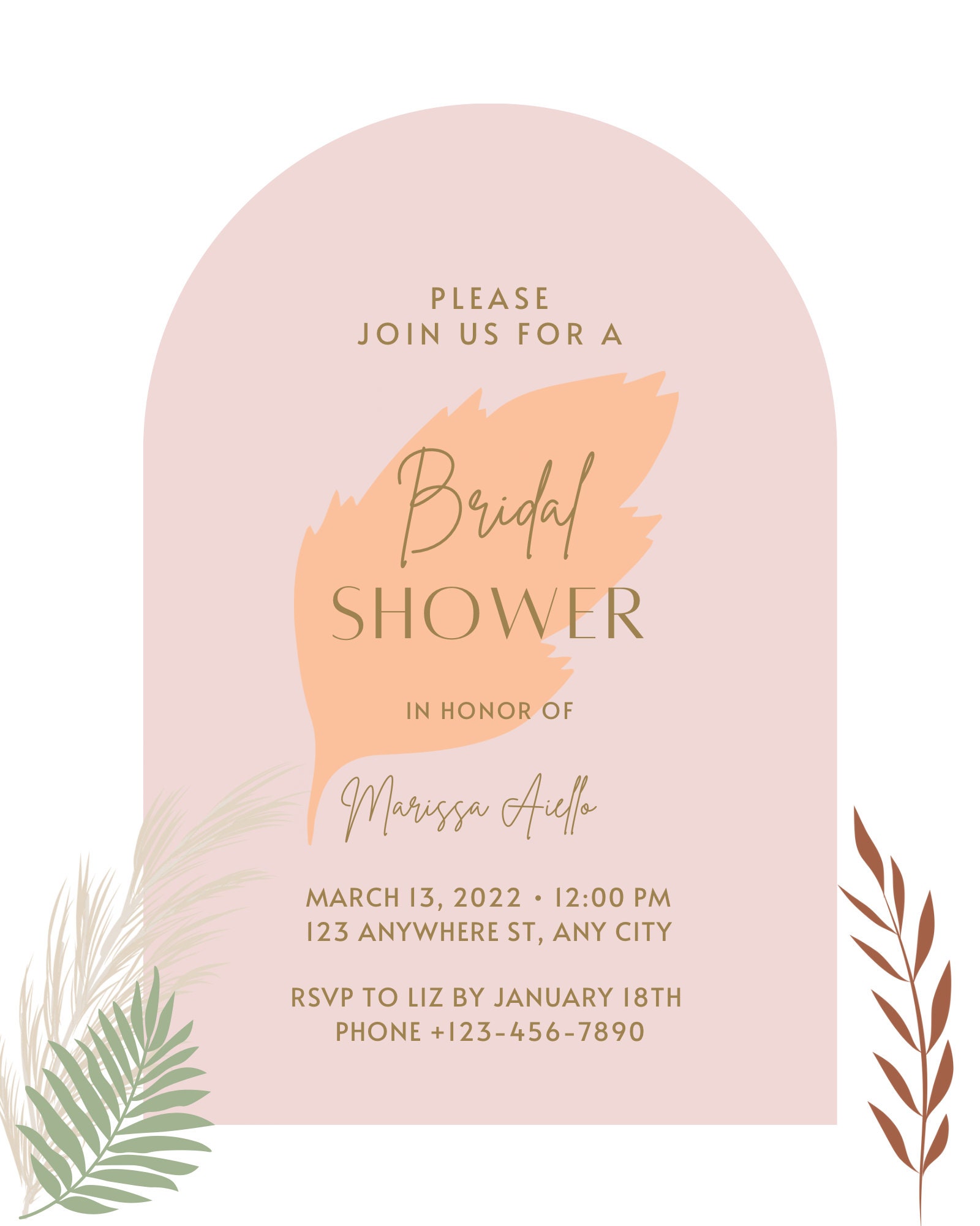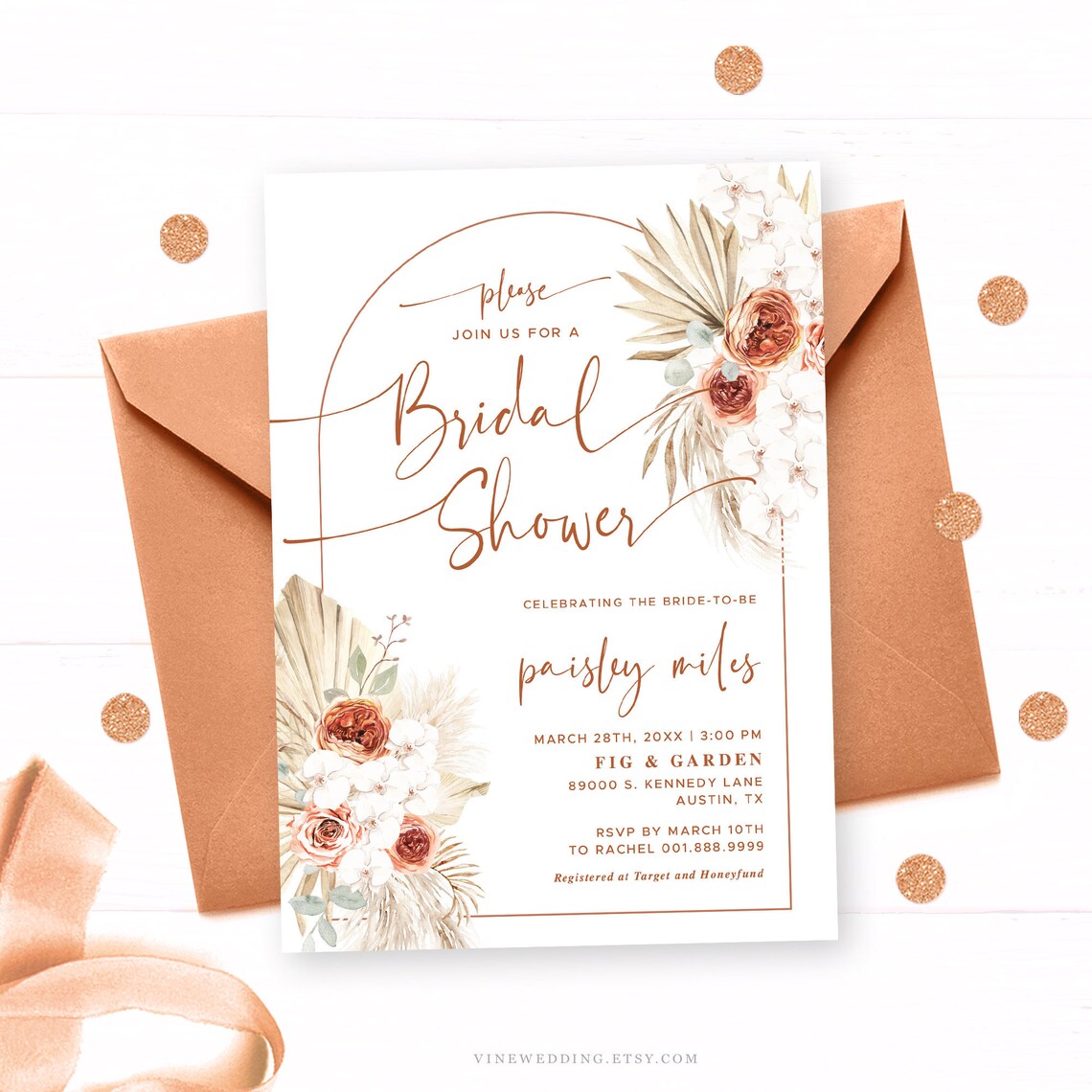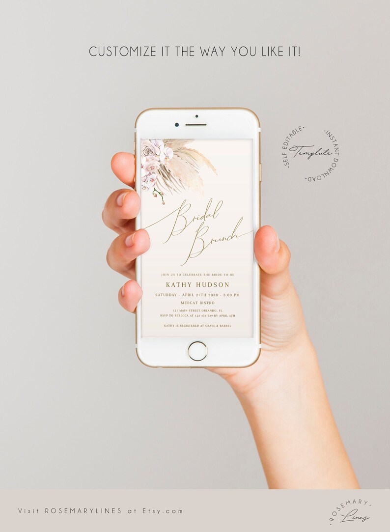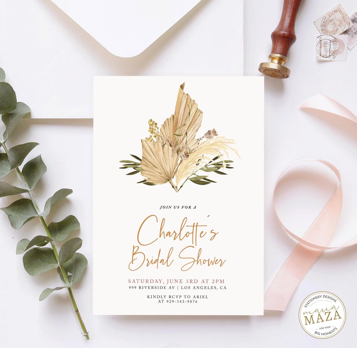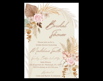 Dreamy Boho Bridal Shower Invitation Template for Boho Brides Pampas