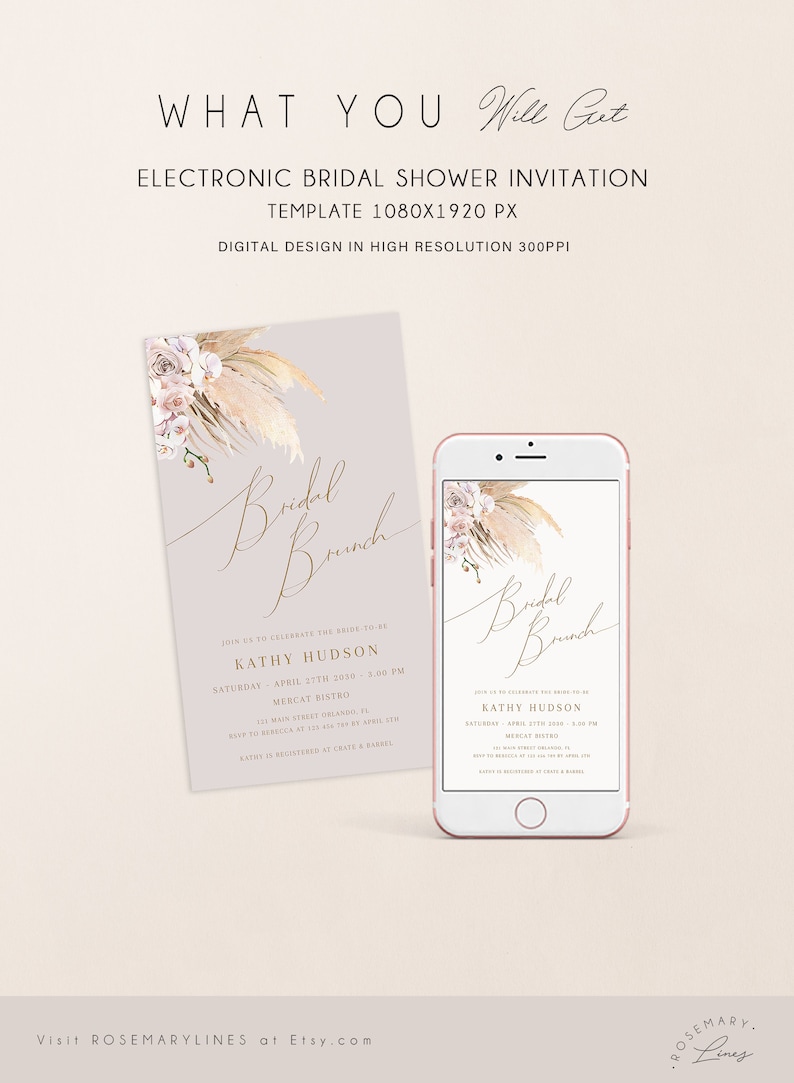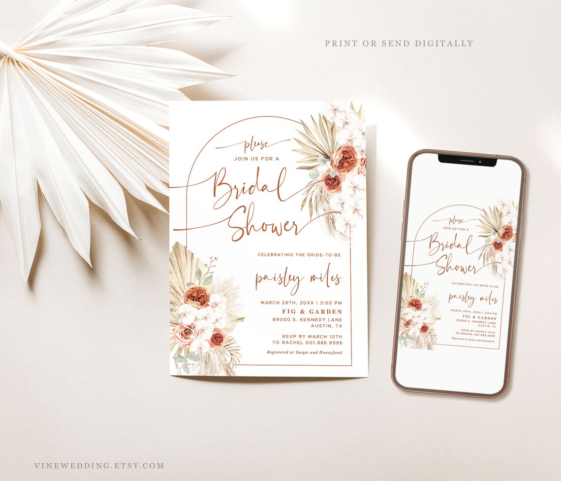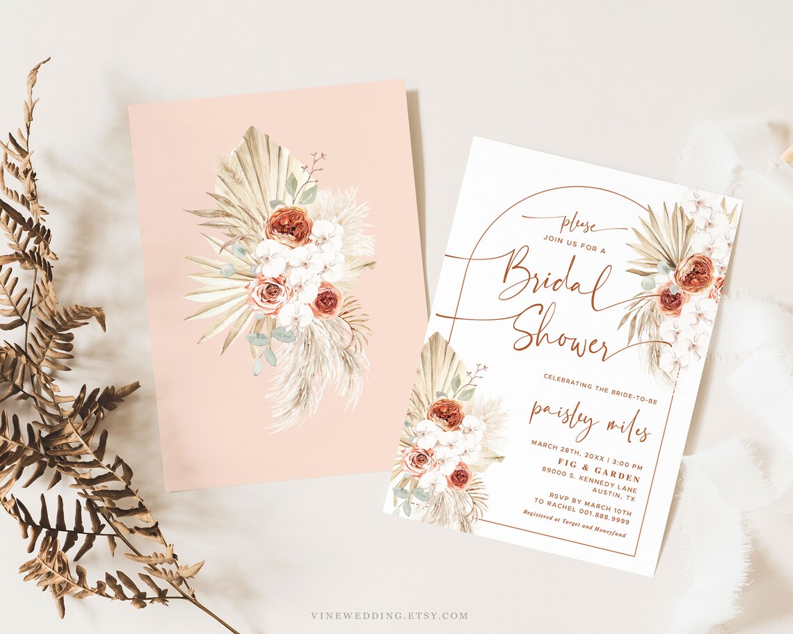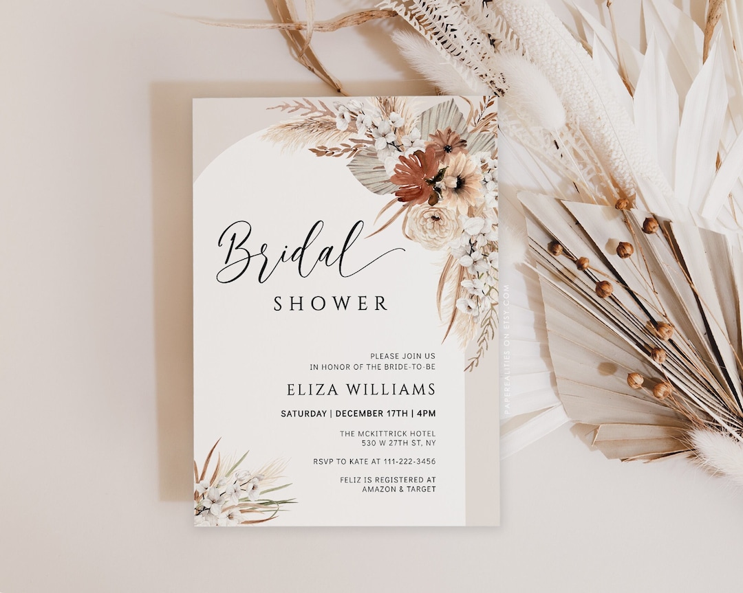 Boho Bridal Shower Invitation Template Pampas Grass Etsy