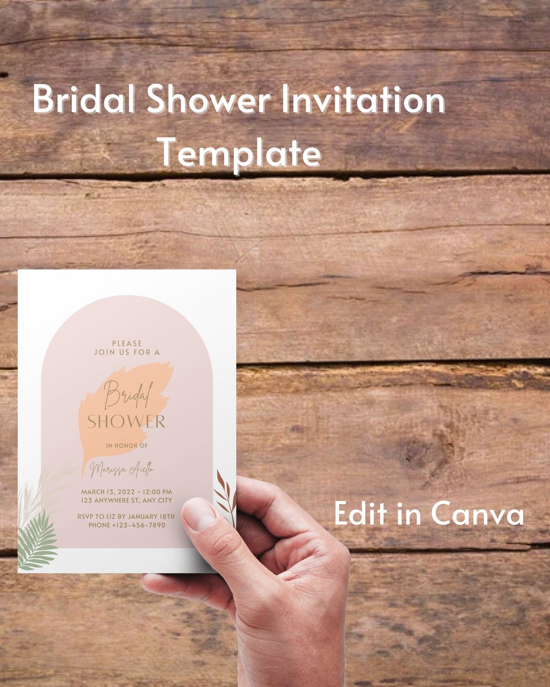 Boho Bridal Shower Invitation Template Printable Wedding Etsy