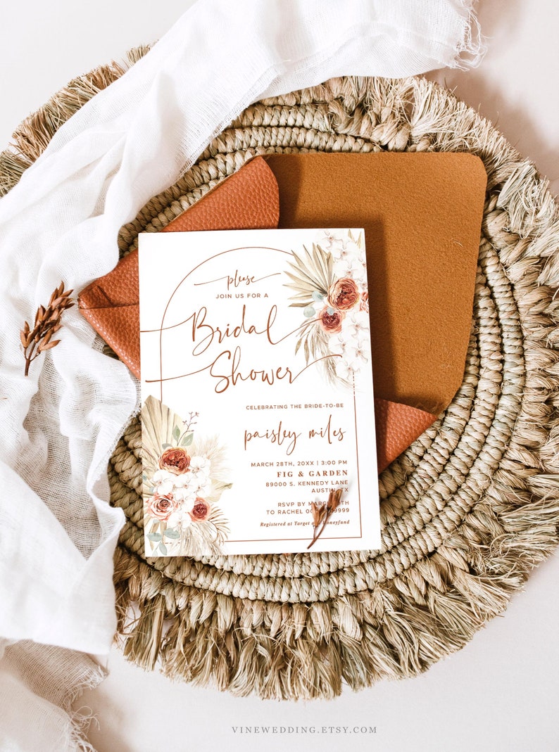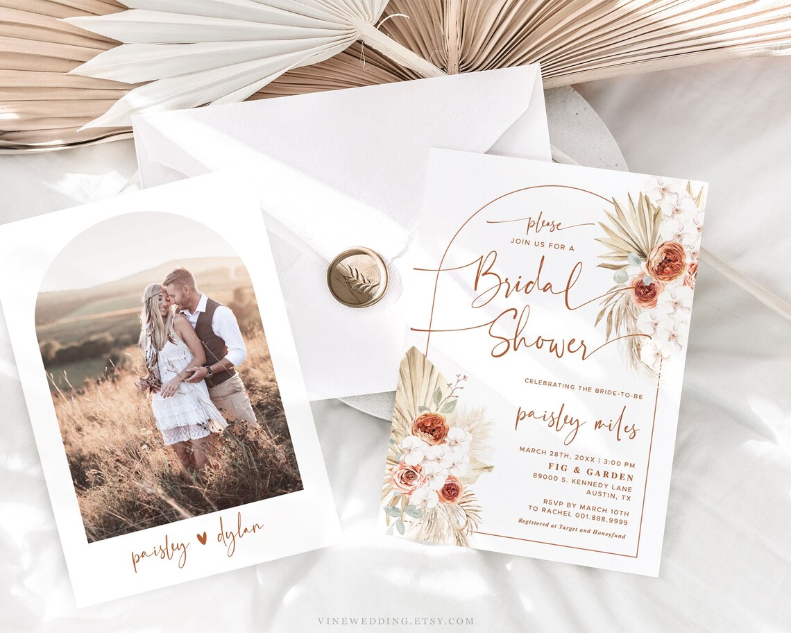 Boho Bridal Shower Invitation Template Etsy