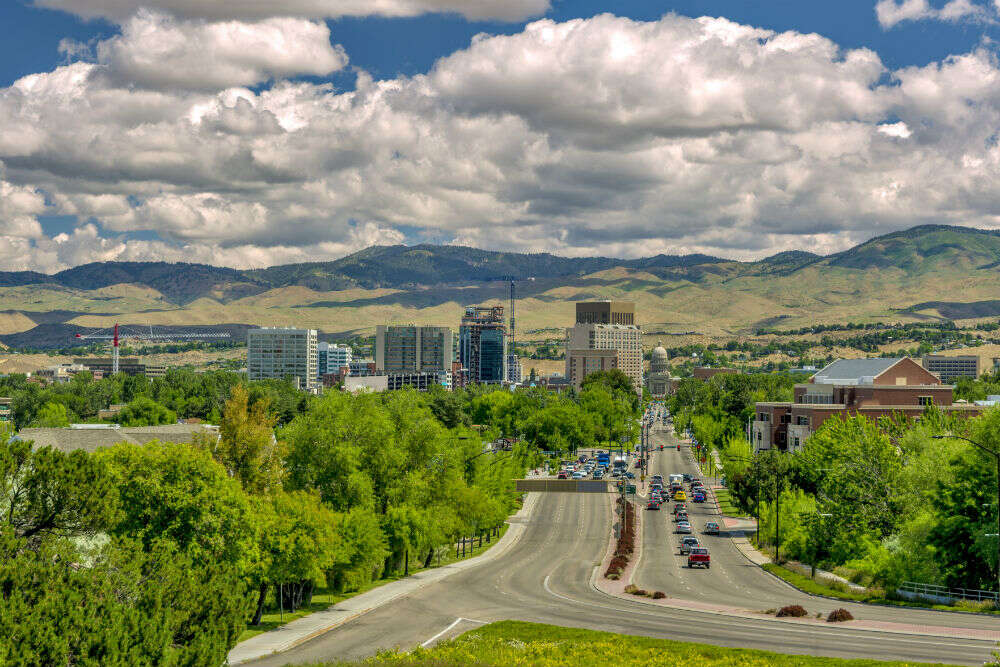 Downtown Boise Idaho with Capitol Blvd leading to the Idaho State