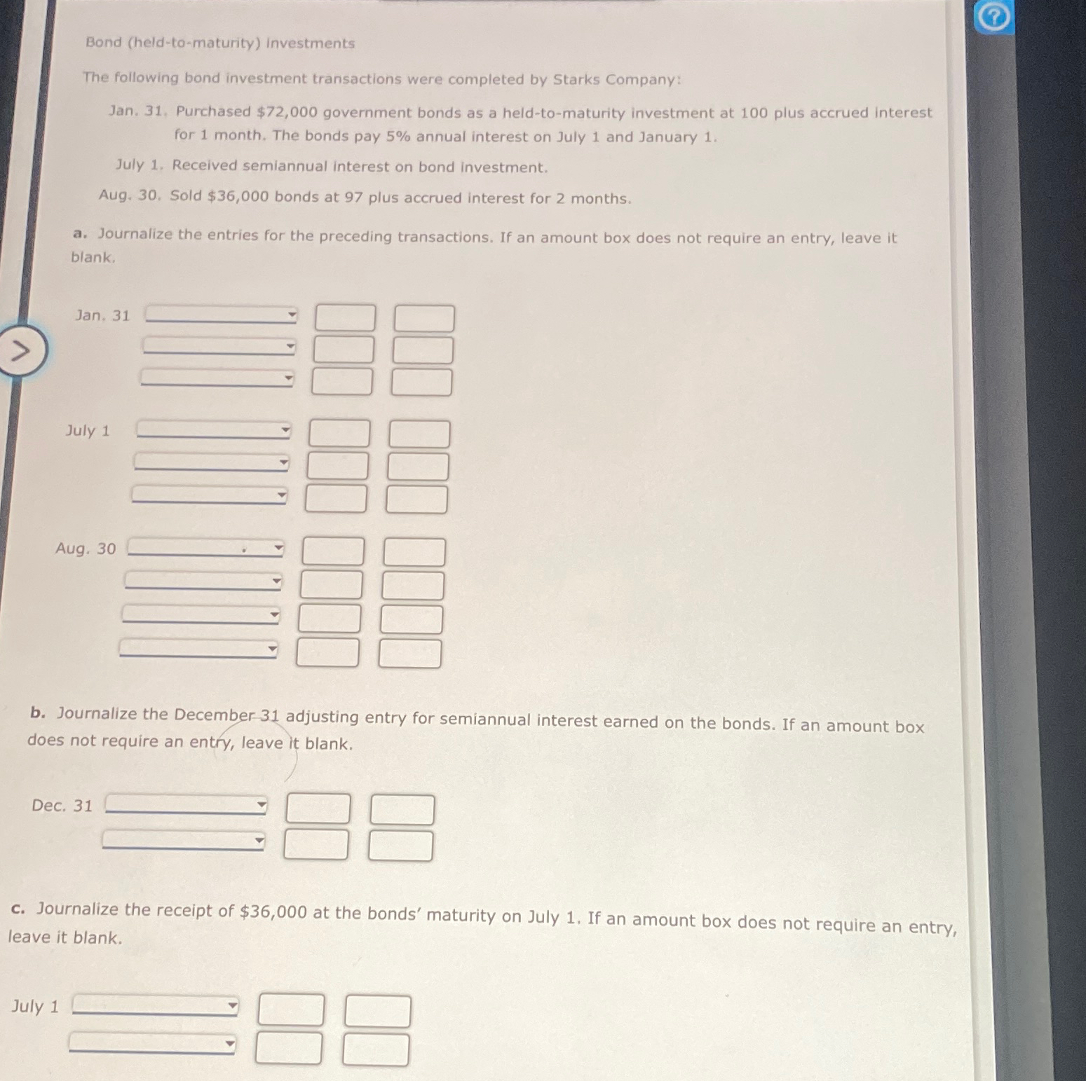 Solved Bond (held to maturity) investmentsThe following Chegg com