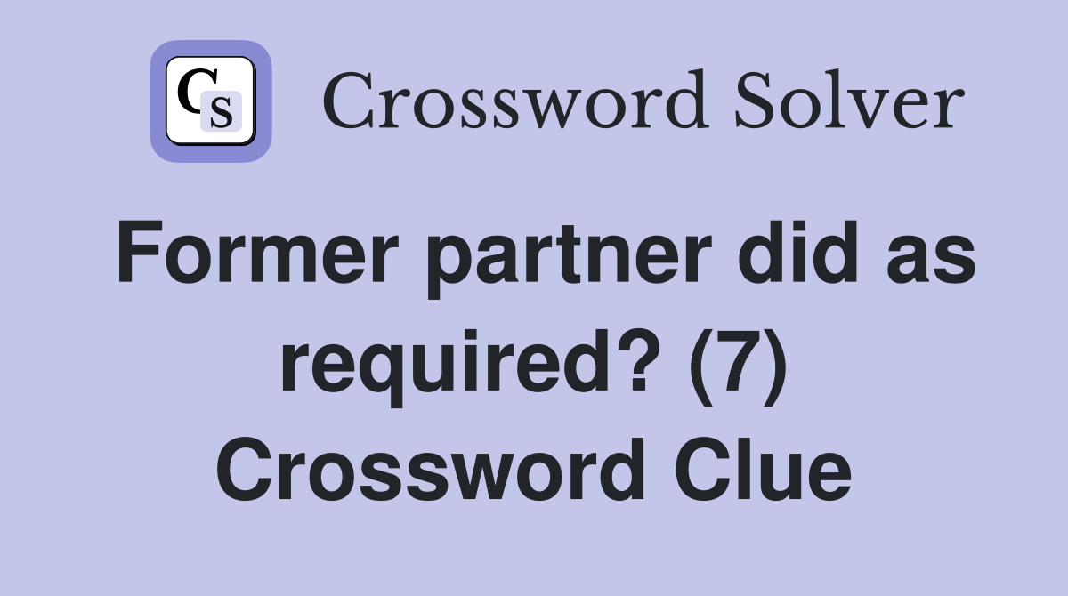 One tests former partner a 27 Crossword Clue Answers Crossword Solver