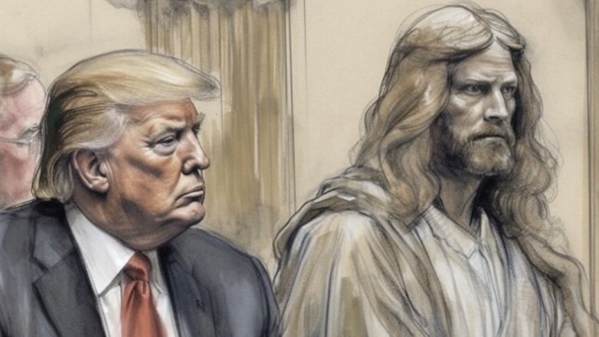 Trump Posts Fake Court Sketch of Jesus Helping Him Through Legal
