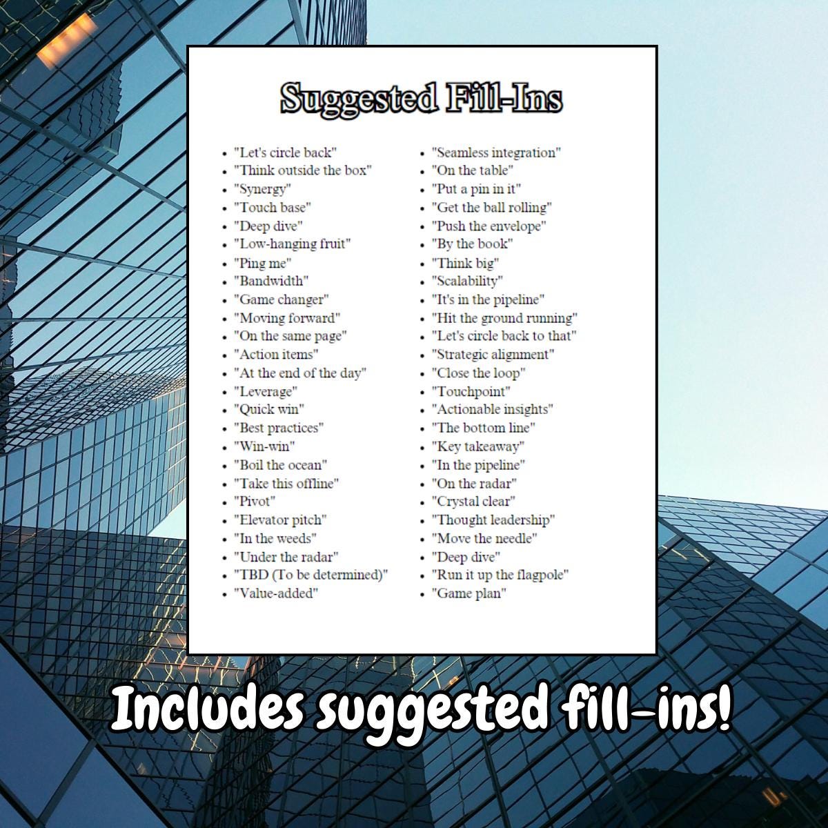 Corporate Lingo Bingo Cards Set of 5 Blank Printables With Fill in