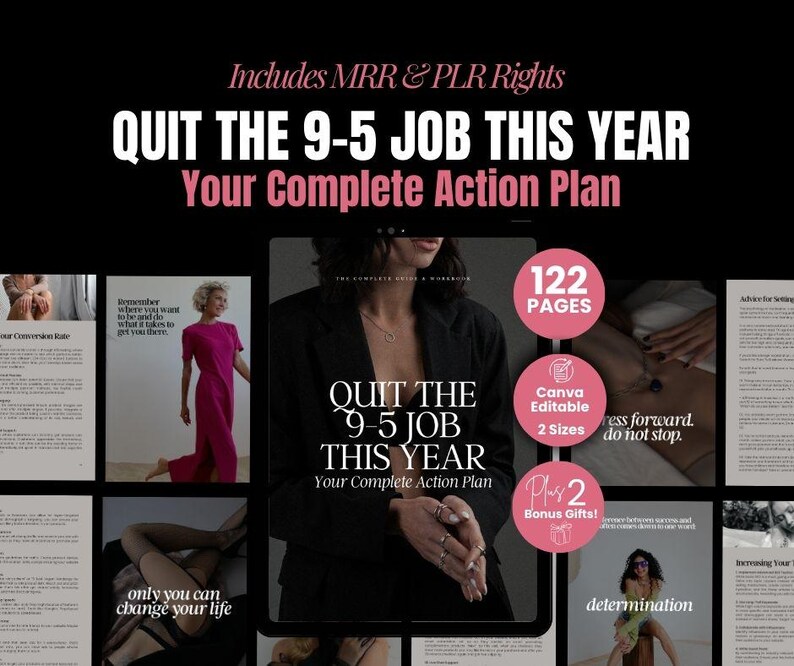 Quit 9 5 Action Ebook: Canva Editable Template MRR PLR Resell Rights
