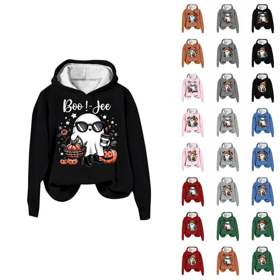 Boo Jee Hoodie 2025 Halloween Pumpkin Ghost Coffee Hoodies for Women