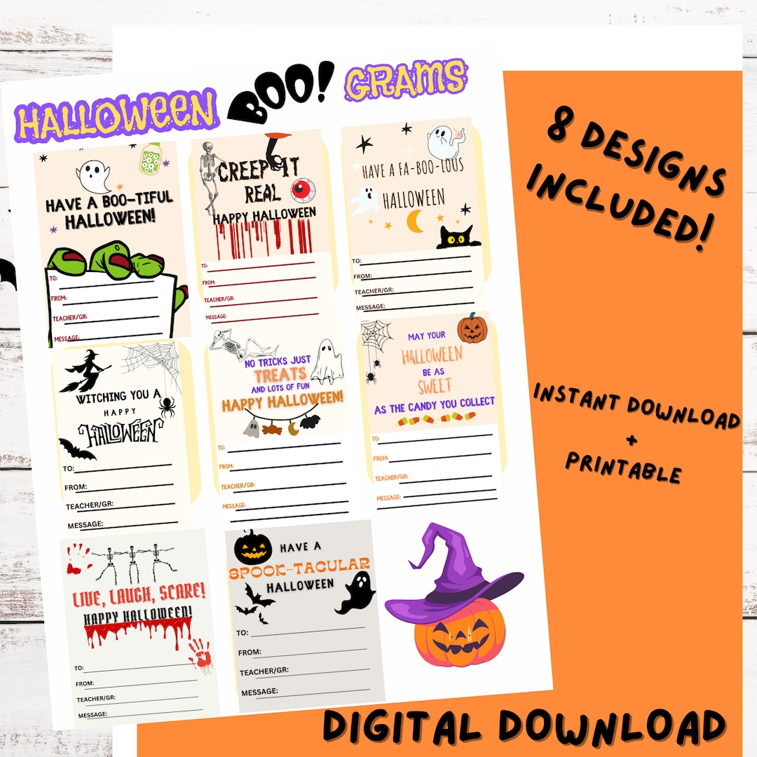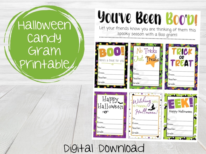 HALLOWEEN PRINTABLE Candy Gram Classroom Boo Grams INSTANT Etsy