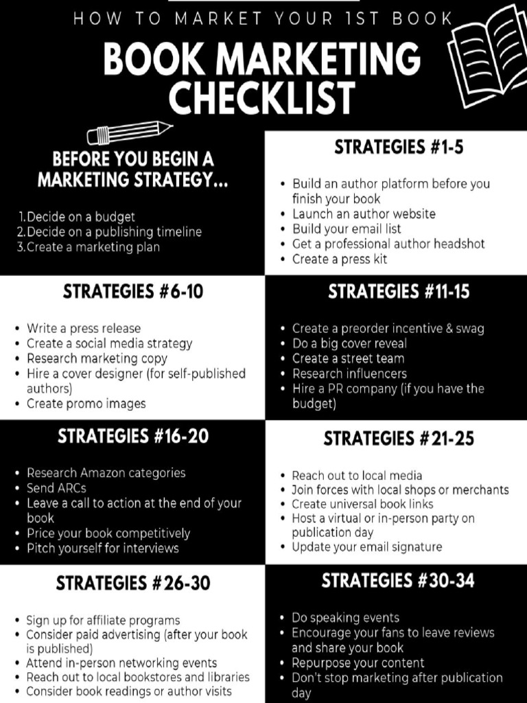 Book Marketing Checklist Plan Template Self Publishing Marketing