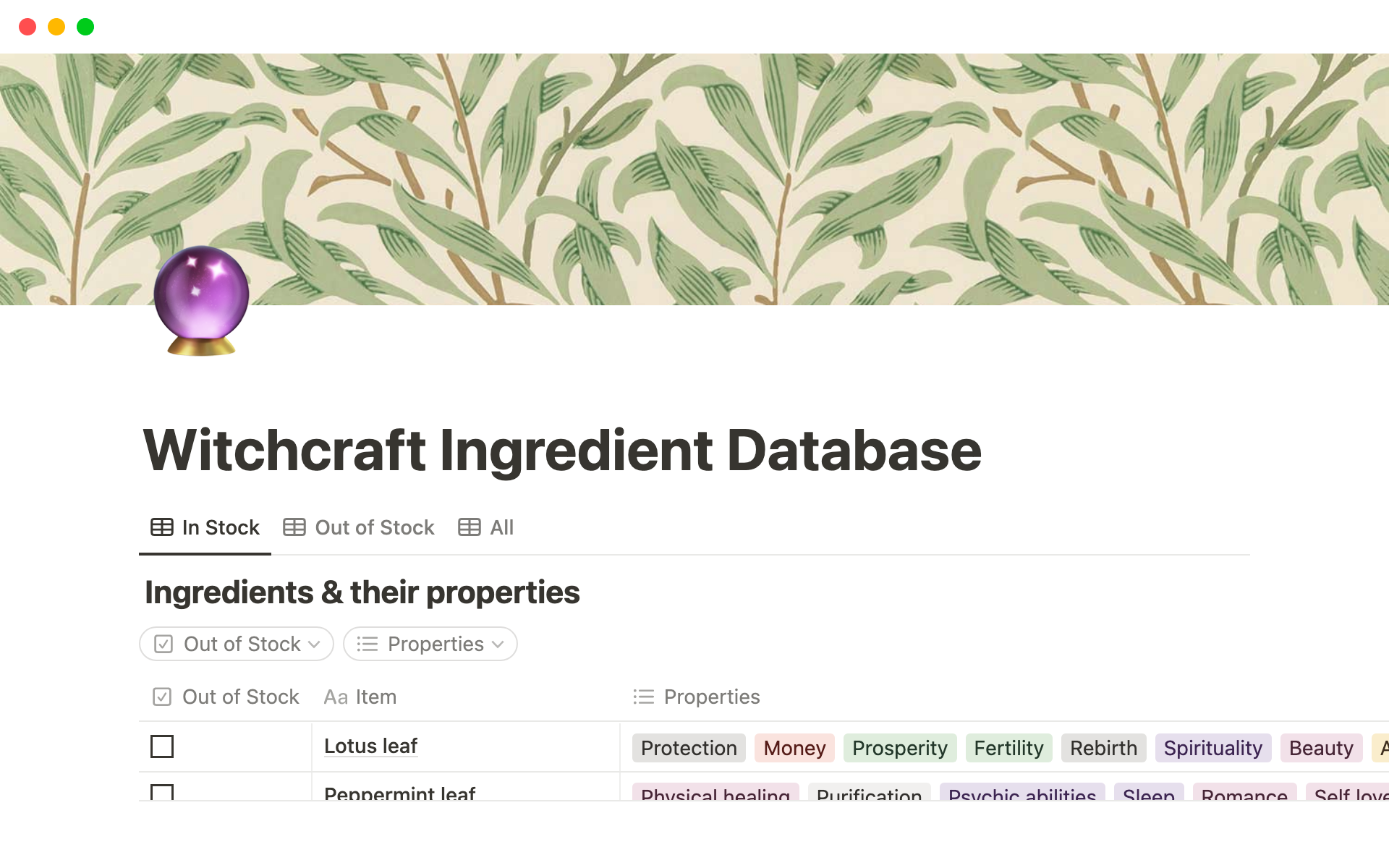 Book Of Shadows Notion Template