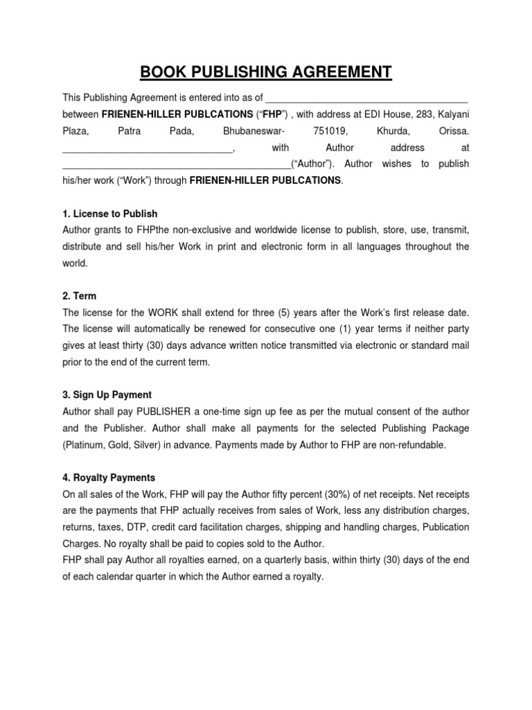 Publishing agreement template free to use