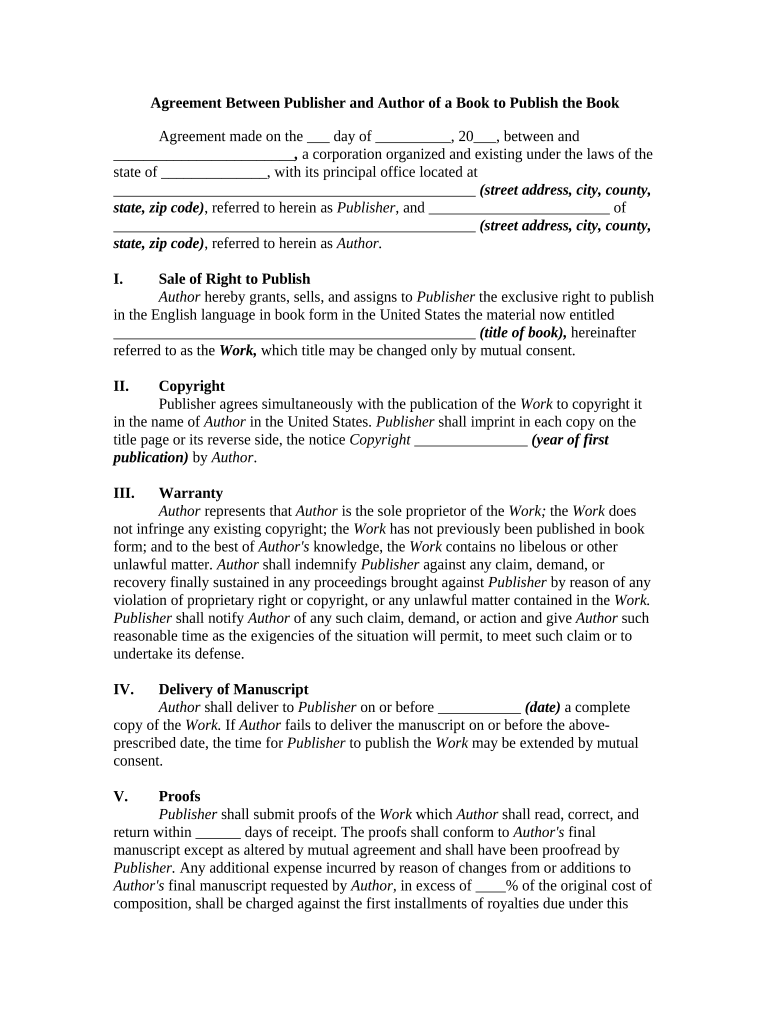 Agreement to Co Publish Book Form Fill Out and Sign Printable PDF