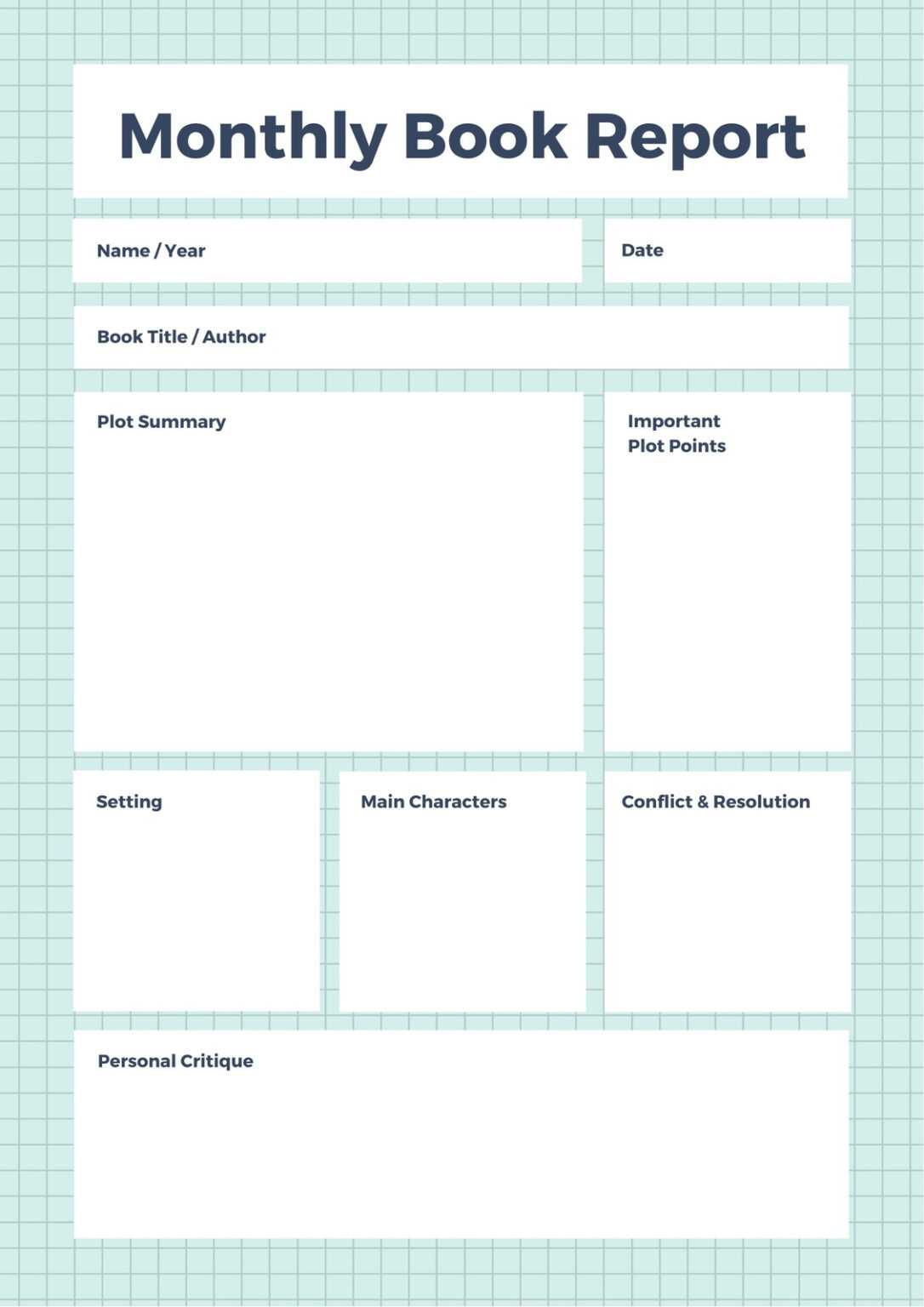 Blue Grid Boxes High School Monthly Book Report Templates in High