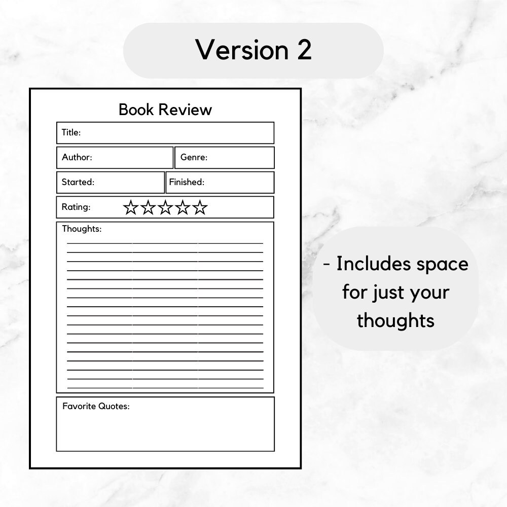 Book Review Printable Template Instant Download Printable PDF Etsy