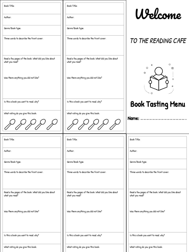 Book Tasting Menu Template Educational Printable Activities
