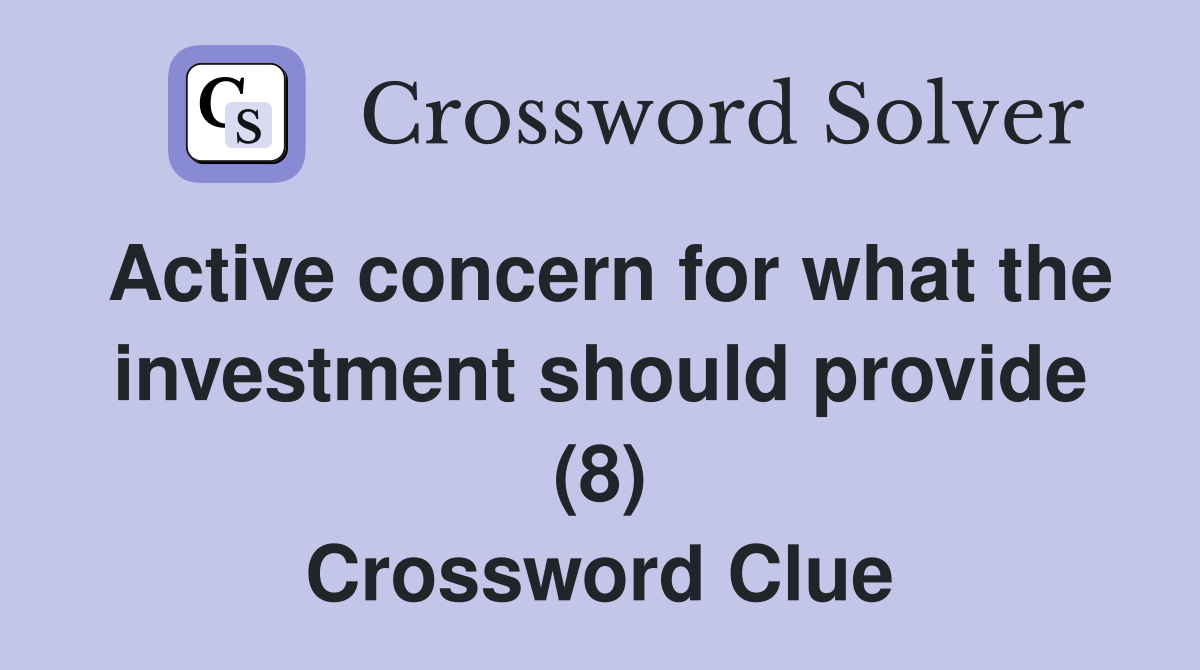 Venture capitalist #39 s concern Crossword Clue Answers Crossword Solver