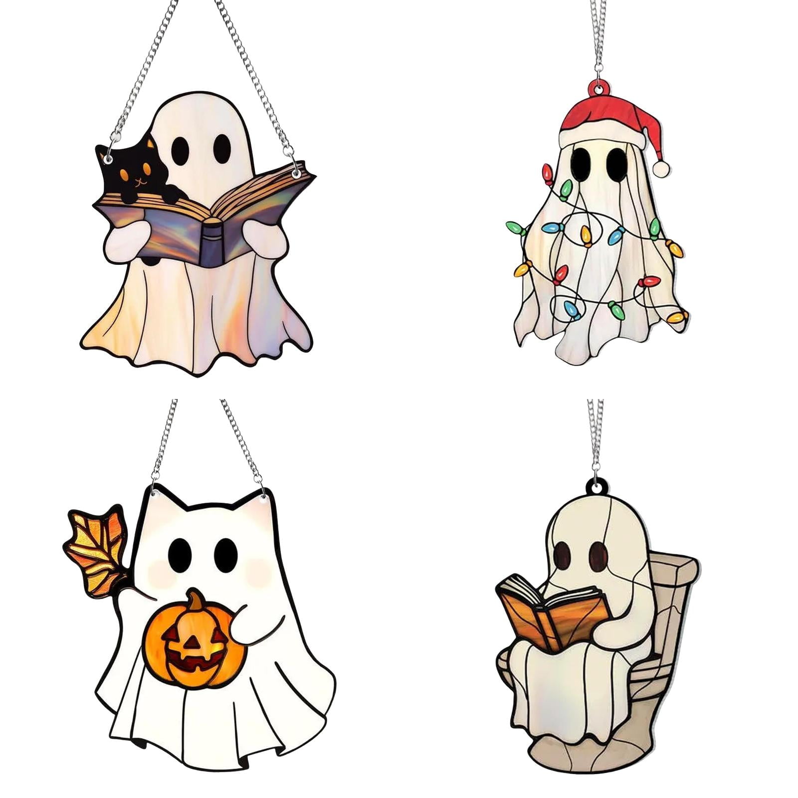 4/3/2/1PCS Cute Ghost Reading Acrylic Suncatcher Ornament Book Window