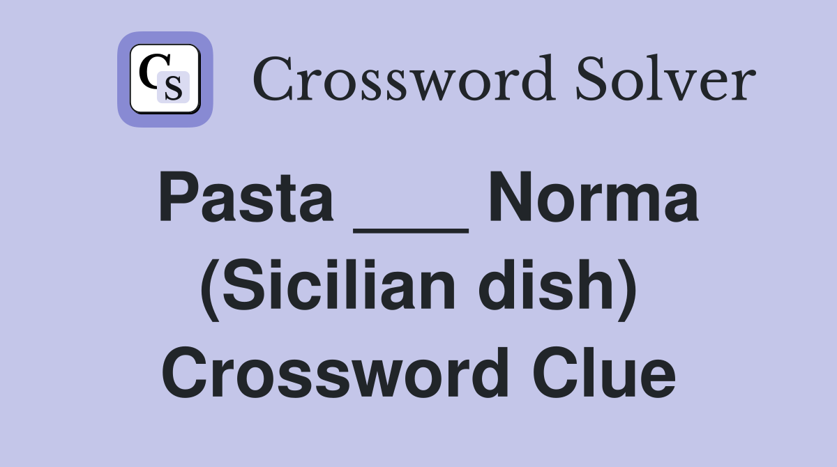 Pasta Norma (Sicilian dish) Crossword Clue Answers Crossword Solver