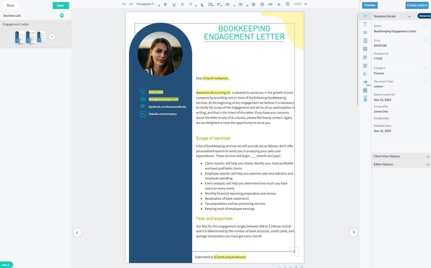 Accountant / Bookkeeping Engagement Letter Template and Examples