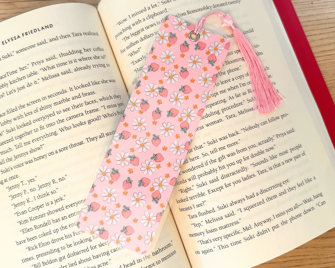 Strawberry Bookmark Handmade Bookmark Floral Bright Bookmark Book