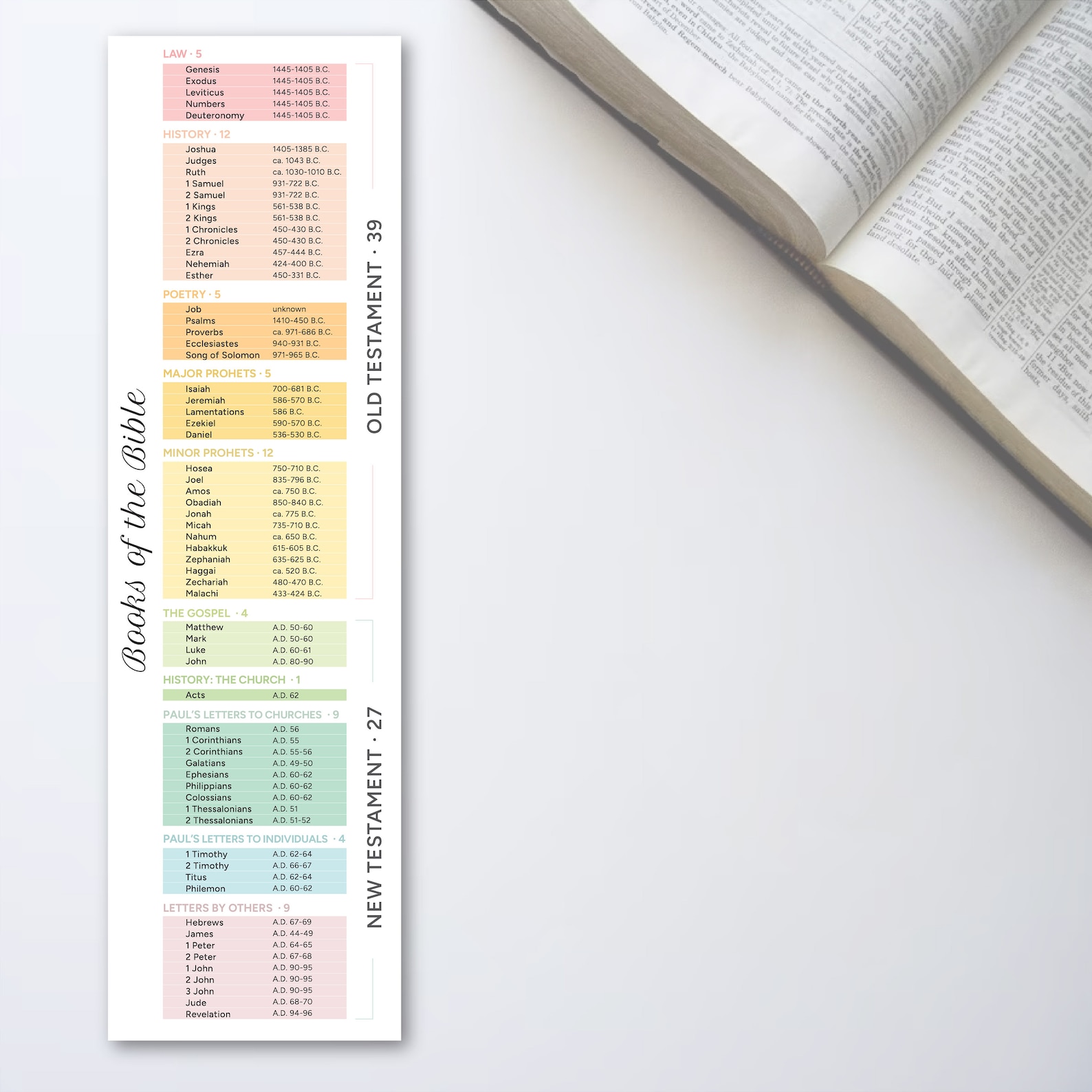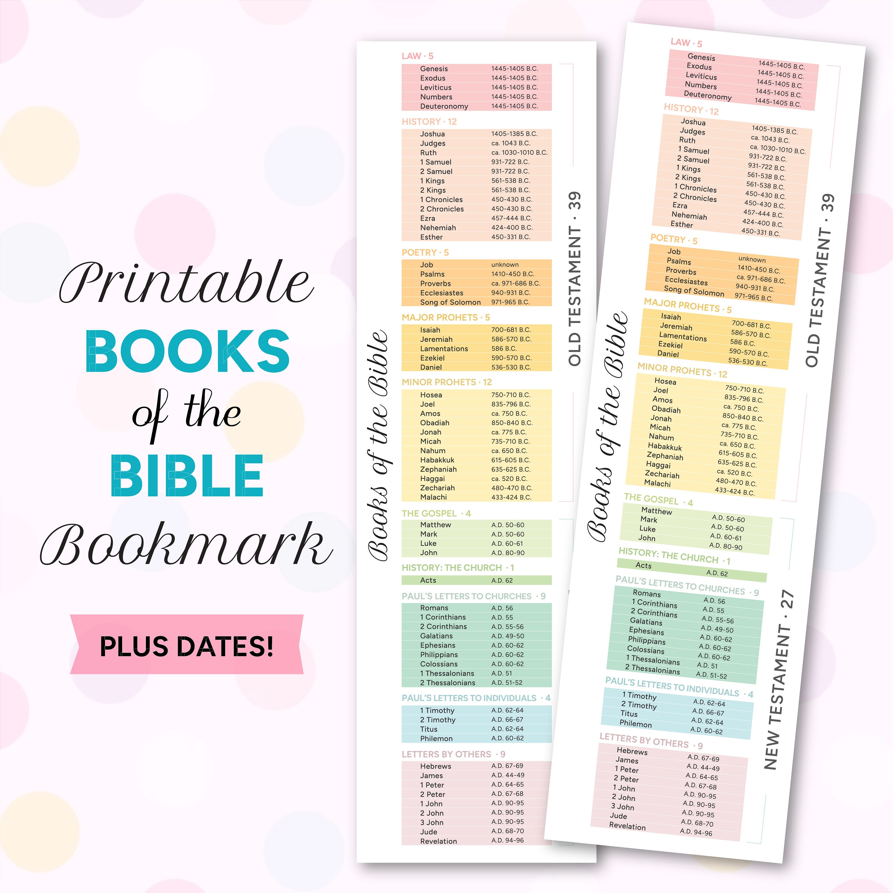 Printable Bookmark Books of the Bible PLUS DATES Christian