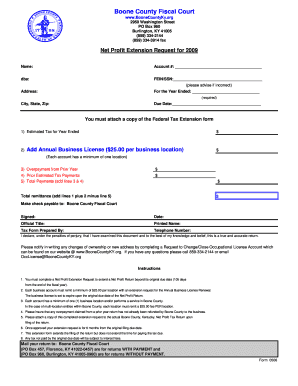 Fillable Online boonecountyky 2009 Net Profit Extension Request Form