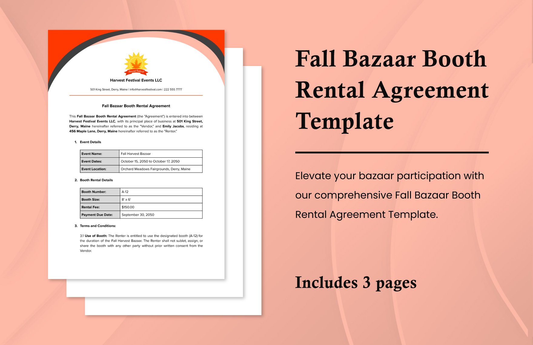 Fall Bazaar Booth Rental Agreement Template in Word PDF Google