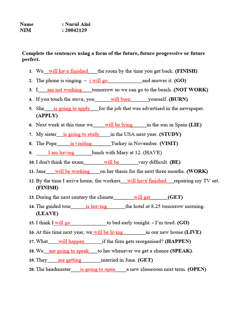 SOLUTION: Future tenses worksheet 04 my answers Studypool