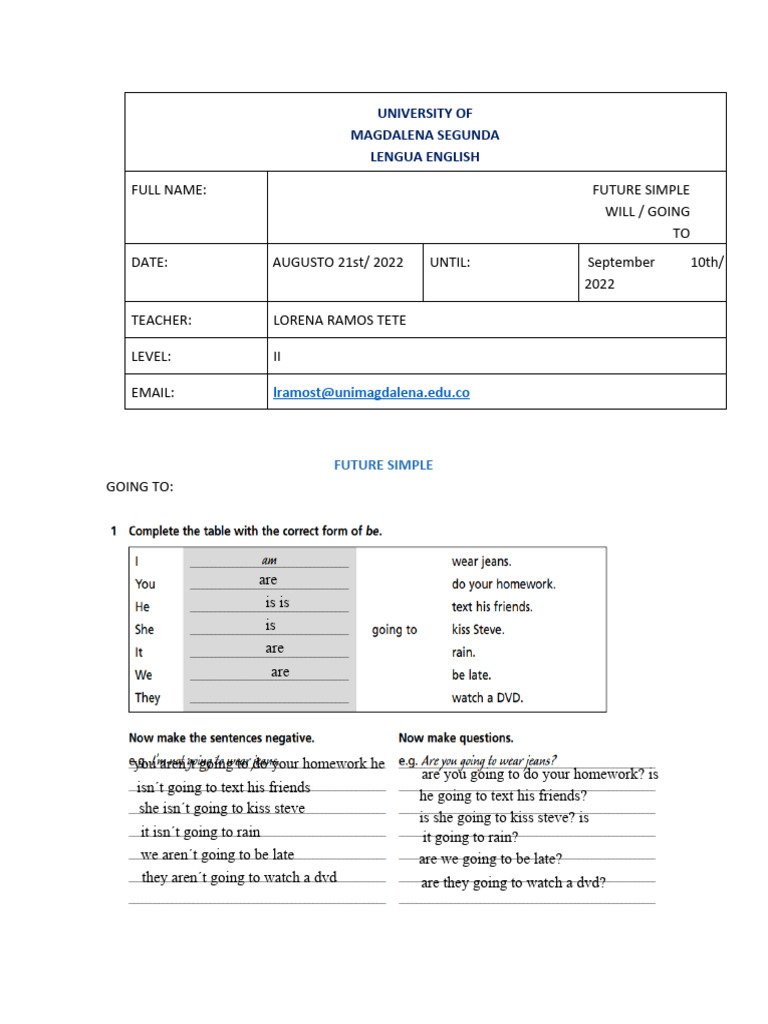 Will Future Going To Future Übungen Mit Lösungen Pdf 2025