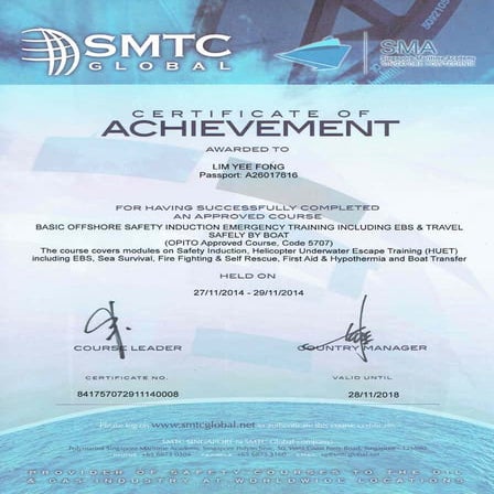 BOSIET CERTIFICATE SMG