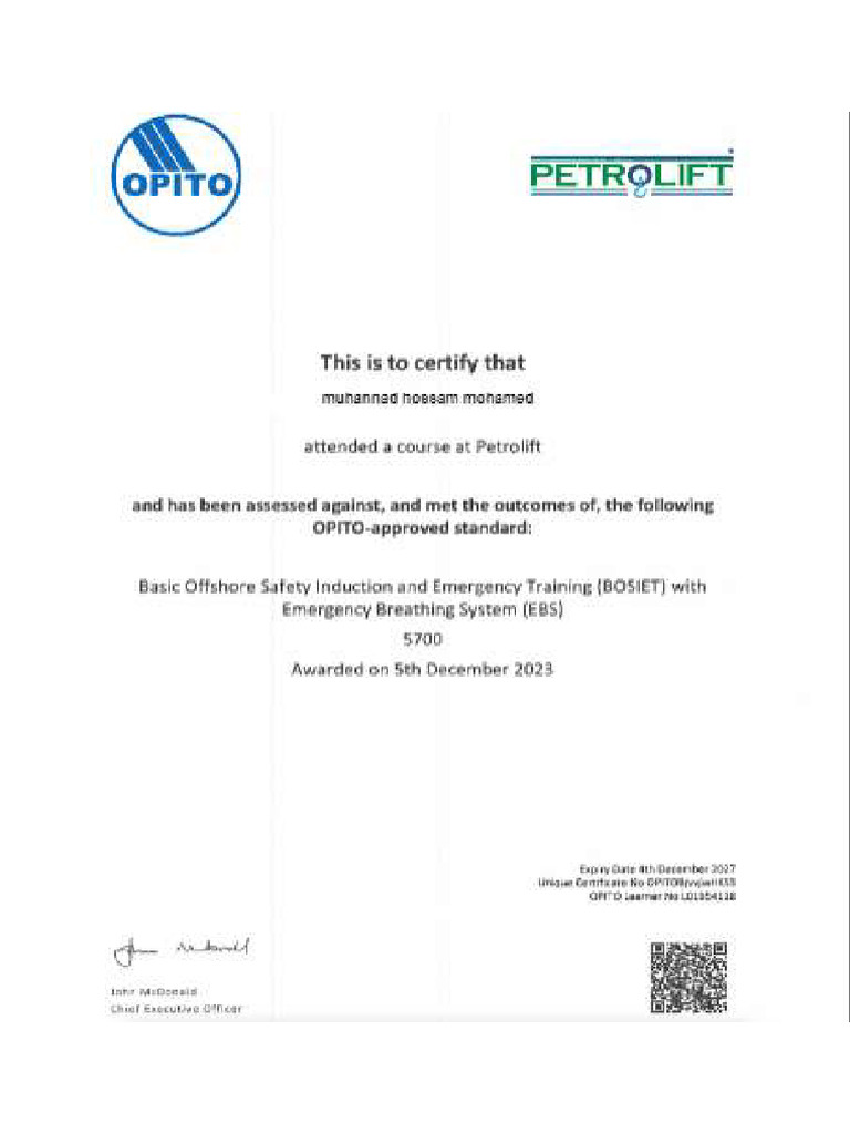 Antonio Gariffo on LinkedIn: OPITO BOSIET Certificate achieved 16