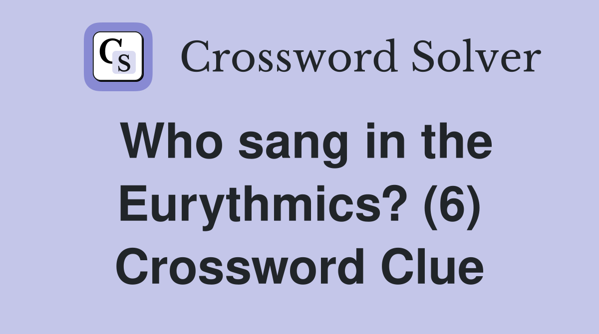 Who sang in the Eurythmics? (6) Crossword Clue Answers Crossword Solver