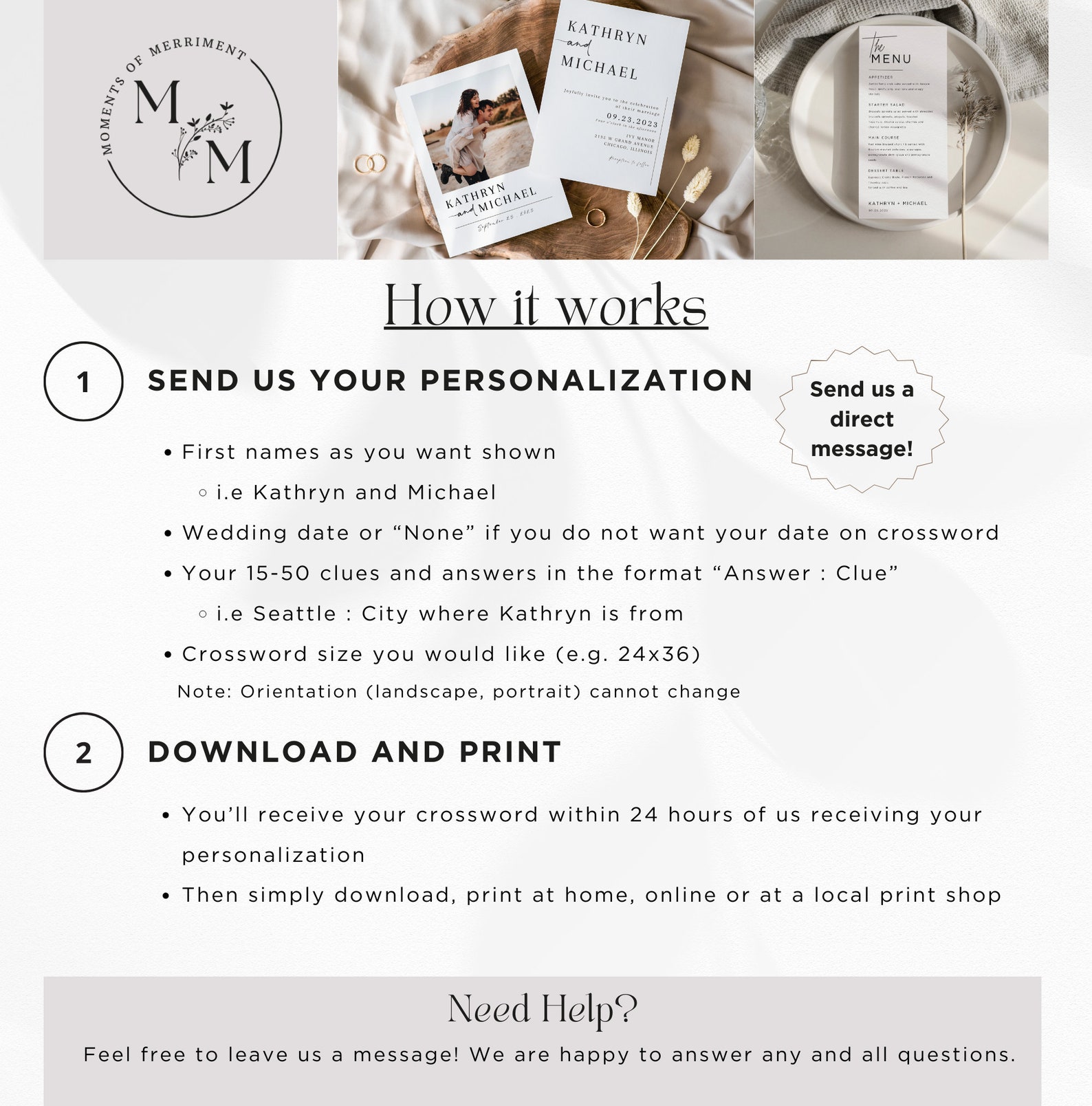 Custom Wedding Crossword Puzzle: Cocktail Hour Wedding or Etsy