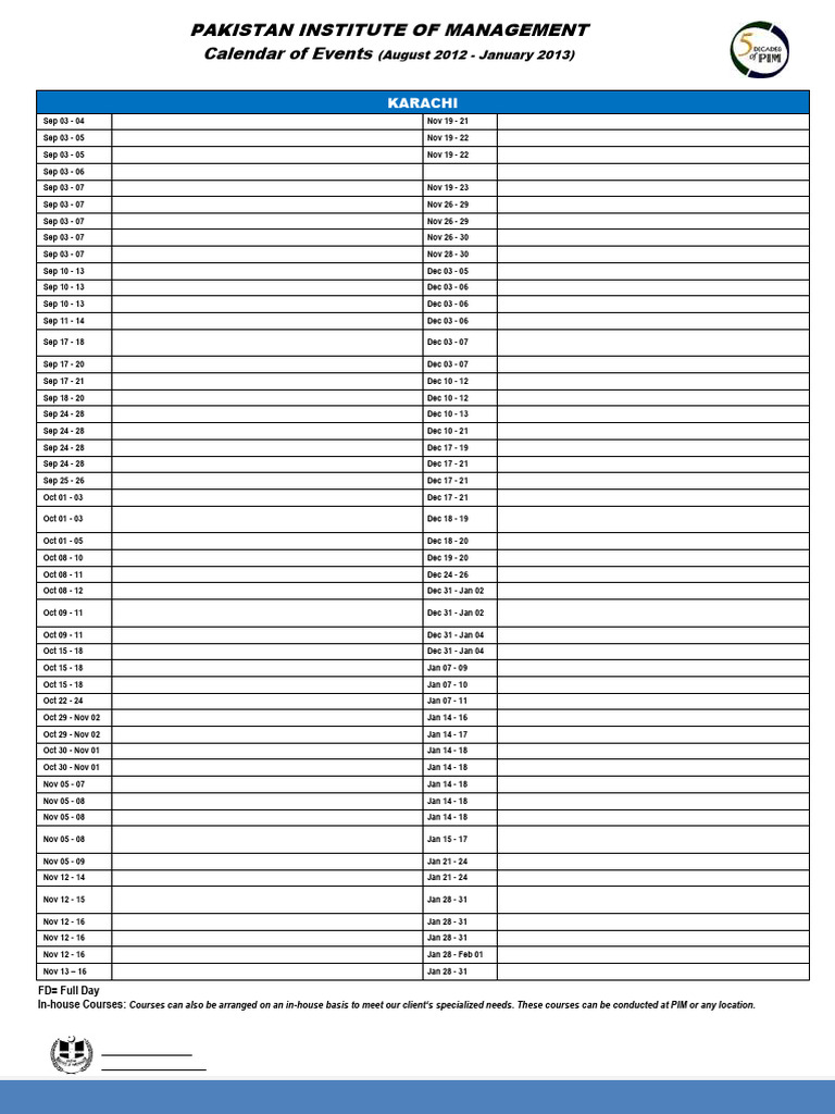 Calender of Events PDF