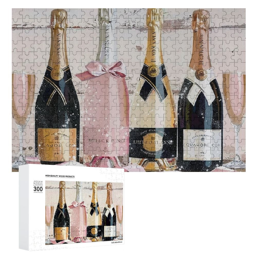 Awypu Champagne Bottles Ribbon Wooden Puzzle Gift for Family Friends