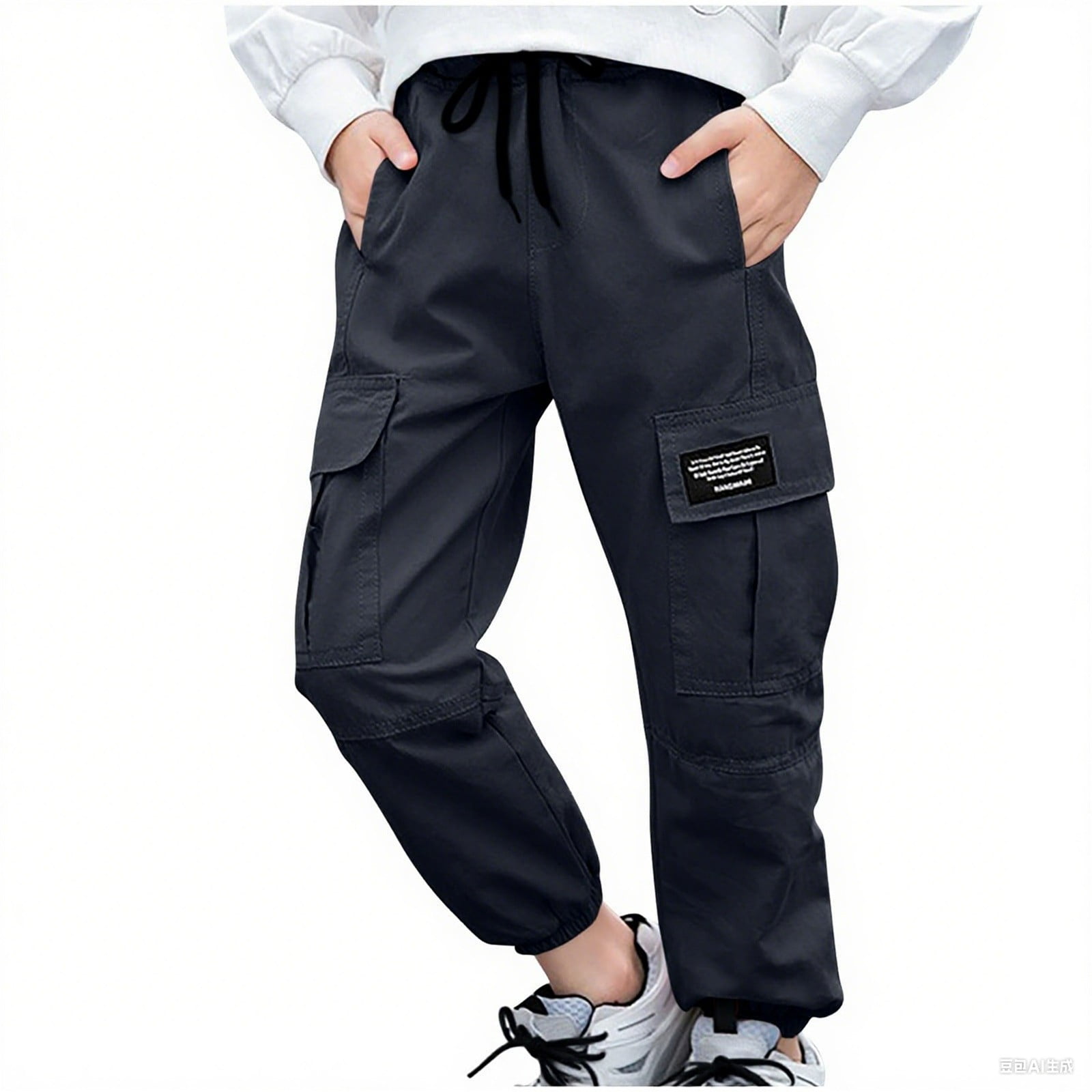 Boys Cargo Joggers Pants Elastic Waist Casual Jogging Trousers Bottom