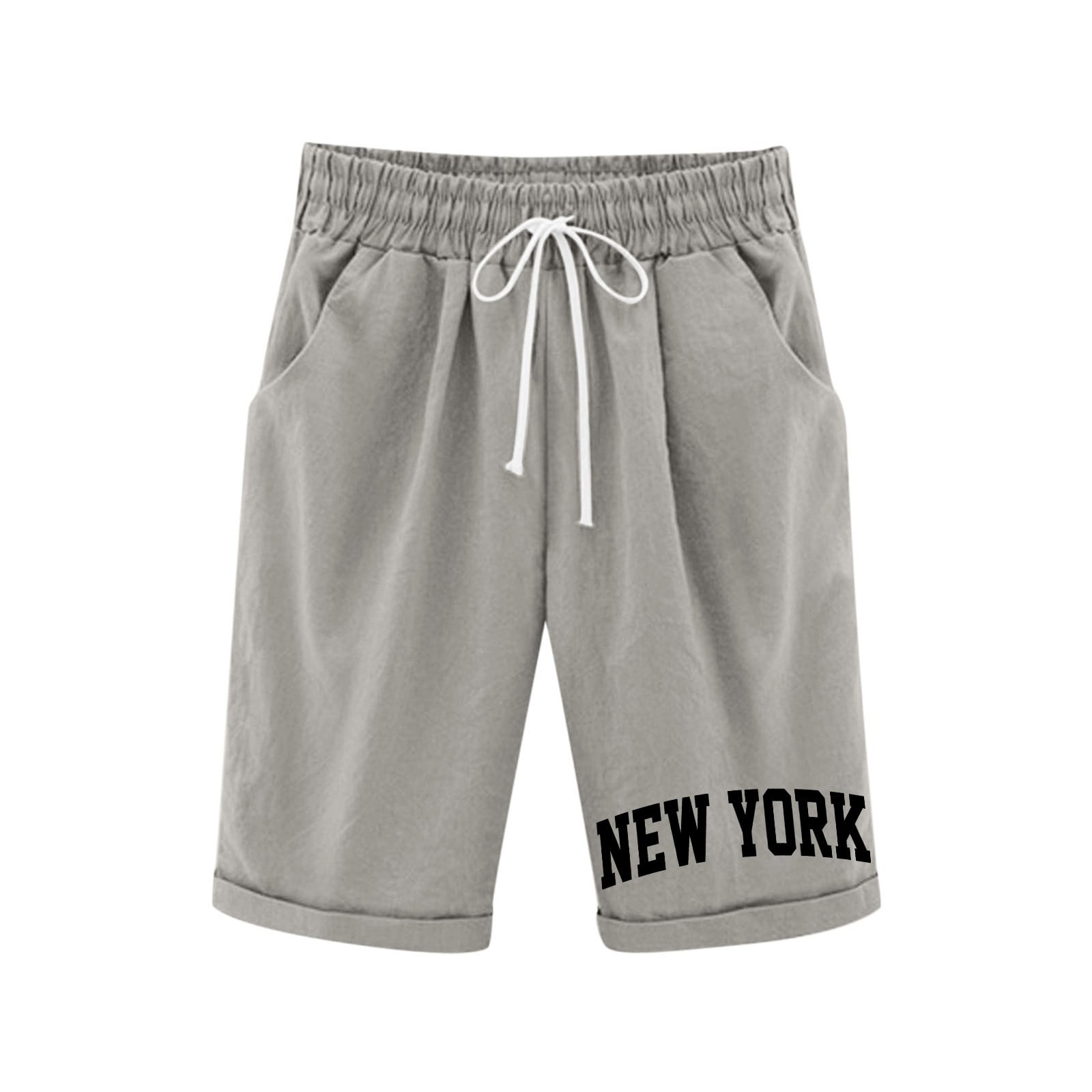 FINALGANG Girl Versatile Shorts Letter Print Straight Leg Drawstring